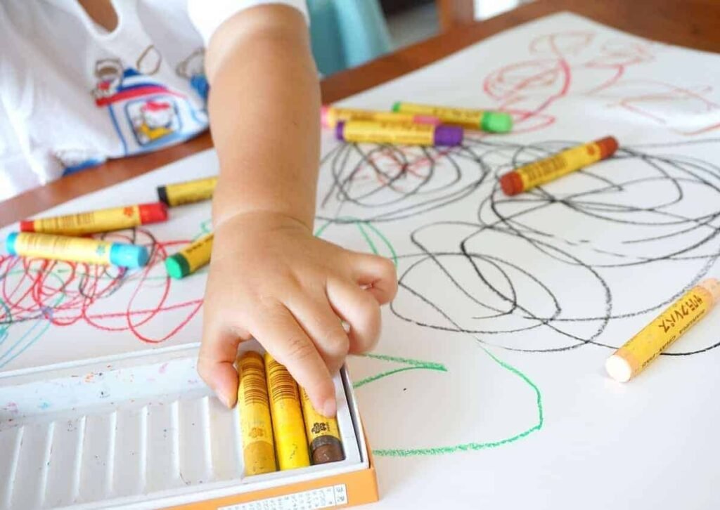 - Provide safe colours, scribbling pads, to encourage colouring and scribbling